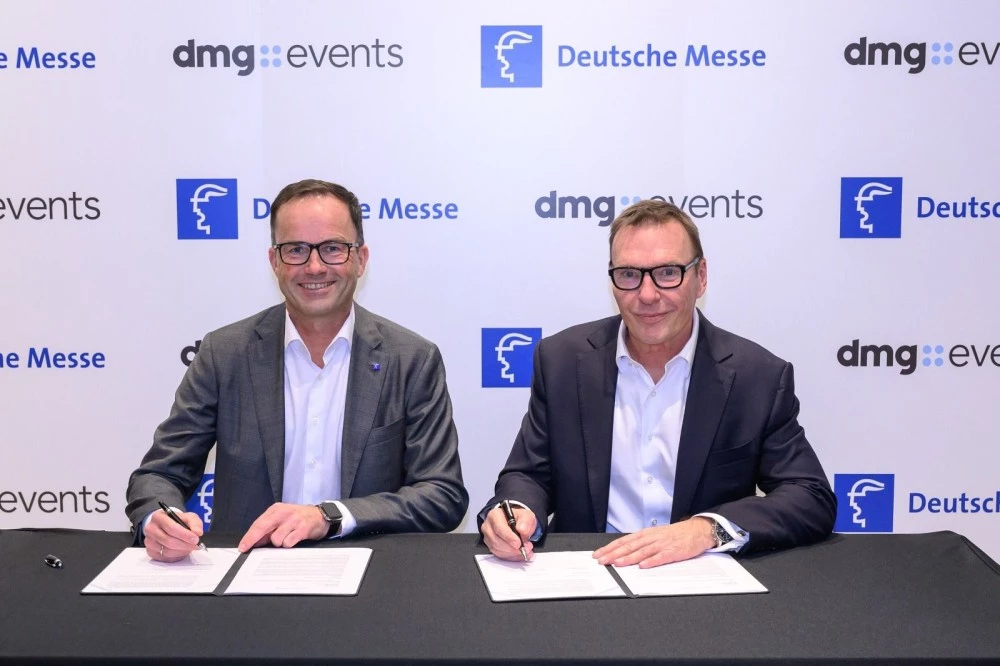 تم توقيع مذكرة التفاهم بين كريستوفر هدسون، رئيس شركة دي إم جي إفنتس، والدكتور يوشن كوكلر، رئيس مجلس إدارة شركة دويتشه ميسه، وذلك خلال المؤتمر السنوي العالمي لـ UFI الذي انعقد في هونغ كونغ بين 19 و22 نوفمبر 2025، وهو أحد أبرز التجمعات المؤثرة في صناعة المعارض العالمية. ويمثل هذا التوقيع خطوة أولى نحو تعزيز التعاون الاستراتيجي بين الطرفين، مع التطلع إلى استكشاف فرص جديدة للشراكة وتطوير مبادرات مشتركة خلال السنوات القادمة.