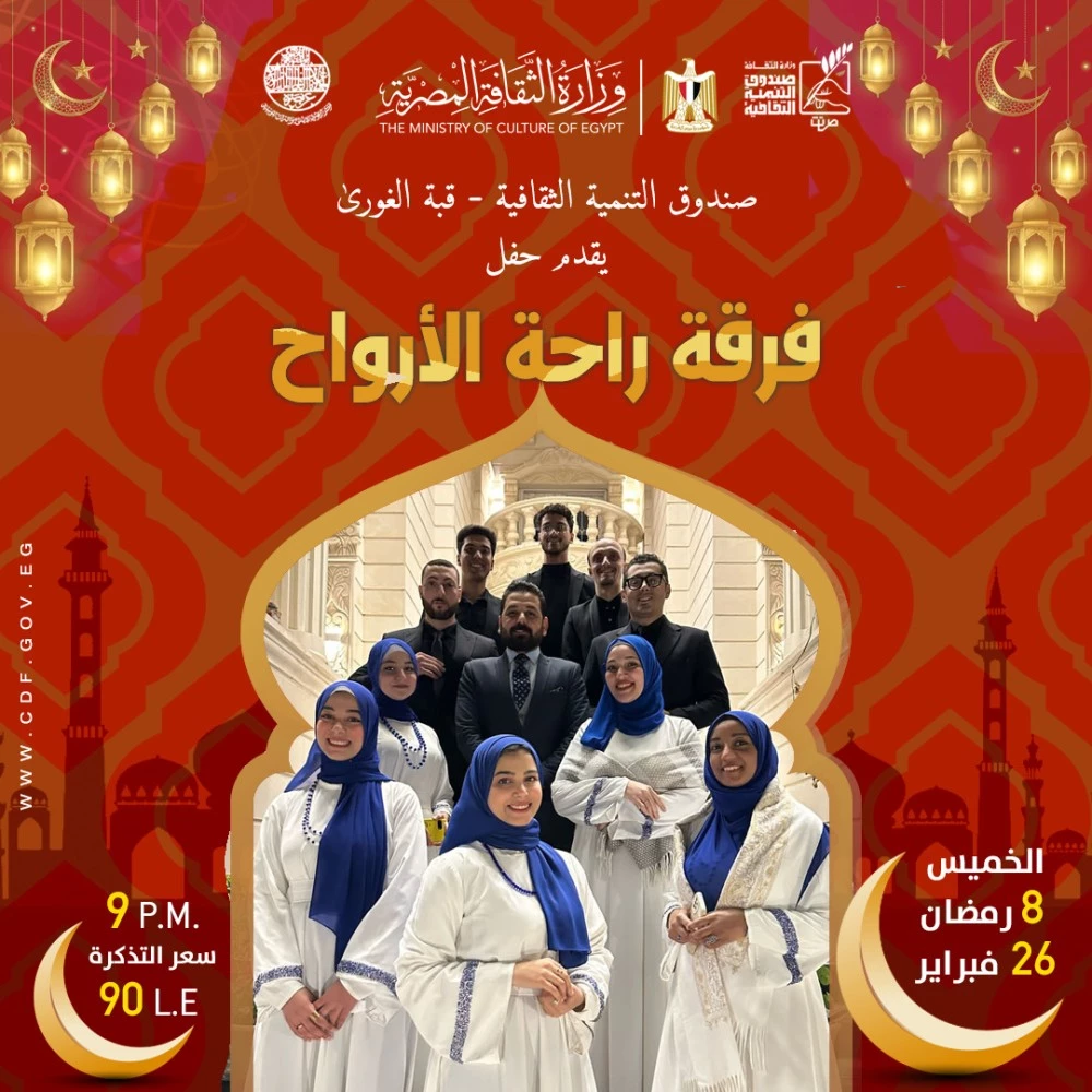 يواصل قطاع صندوق التنمية الثقافية تقديم برنامج رمضاني متكامل يجمع بين الإنشاد الديني، والعروض الموسيقية، والورش الإبداعية، والحرف التراثية، من خلال مجموعة من الفعاليات المتنوعة في مراكزه الثقافية بالقاهرة والإسكندرية. ويعكس برنامج 26 فبراير – 8 رمضان رؤية ثقافية شاملة تهدف إلى إحياء الأجواء الروحانية للشهر الكريم وتعزيز دور الثقافة في الحياة المجتمعية.