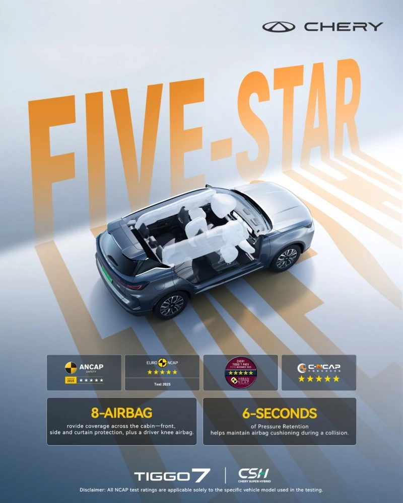 من الصين إلى أوروبا، ومن أستراليا إلى جنوب شرق آسيا، ترسل TIGGO7 رسالة واضحة للعائلات حول العالم عبر نتائجها ذات الخمس نجوم: السلامة الحقيقية لا تعرف الطرق المختصرة ولا تعترف بالحدود الجغرافية. ومن خلال هذا الإنجاز، تجسد شيري التزامها بشعار “السلامة من أجل العائلة” عبر حلول تنقل تجمع بين القيمة التكنولوجية المتقدمة ومستويات السلامة المتفوقة. ومع جعل الحماية بخمس نجوم معيارًا أساسيًا لمستخدميها حول العالم، تسعى شيري إلى أن تحظى كل عائلة براحة البال والثقة الكاملة في كل رحلة على الطريق.